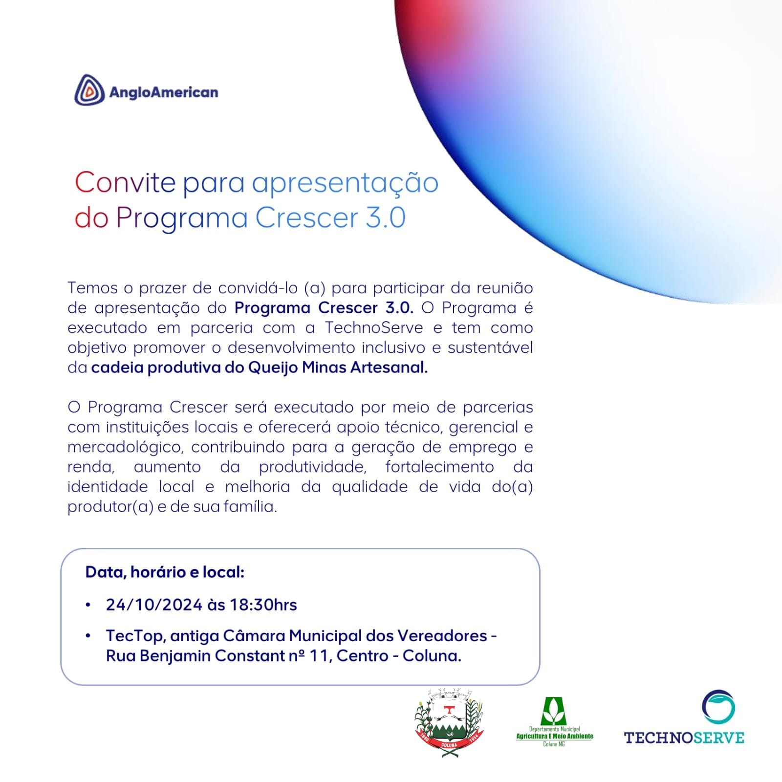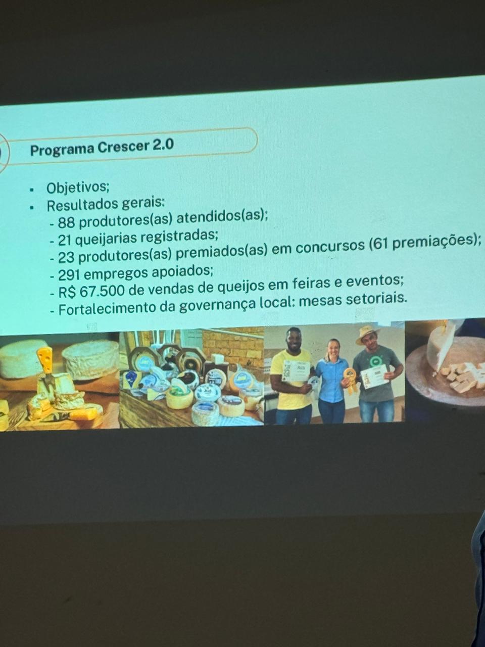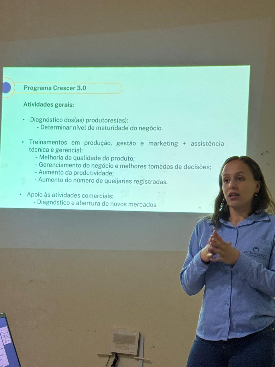 Apresentação do programa crescer 3.0 executado em parceria com a TechnoServe, que tem como objetivo promover o desenvolvimento inclusivo e sustentável da cadeia produtiva do Queijo Minas .